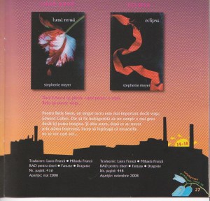 Ar fi minunat daca as putea afla data lansarii celui de-al 3-lea volum Eclipsa – am vazut ca este in curs de aparitie si sincer, nu mai am rabdare.Abea astept sa intru in posesia ultimelor 2 volume Eclipse si Breaking Dawn traduse in romana.Sincer,la un moment dat chiar ma intrebam daca persoana care a tradus aceste volume i-a facut placere sa le citeasca si sa le traduca si ma bucur ca tot mai multi oameni sunt fascinati de Twilight Saga.