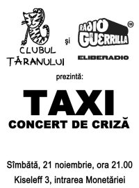 Sâmbăta asta am ocazia să văd formaţia Taxi live după 5 (aproape 6) ani în care nu i-am văzut decât la televizor. Nu pot să spun decât că mă bucură foarte foarte foarte mult. Aveţi mai jos afişul şi noile (foarte reuşite) melodii TAXI: