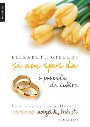 • A doua carte pe care o citesc este lectură pentru acasă şi se numeşte “Şi am spus da” (o poveste de iubire) de Elizabeth Gilbert, este o continuare a mult cunoscutei “Mănâncă, roagă-te, iubeşte”. Am parcurs doar câteva pagini însă deja îmi place mult contrar faptului că am ales la propriu cartea după copertă. Are nişte lalele galbene superbe pe ea şi două verighete, imaginea creată fiind una foarte frumoasă.