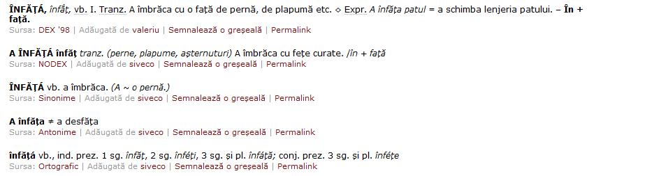 • Pai nici eu n-am avut indoieli ca nu-i ok pana cand anul asta s-au uitat lung la mine mai multe persoane cand l-am folosit. Dar la urma urmei nici la penson n-am avut vreun dubiu…eram convinsa ca exista cuvantul. Ma bucur totusi ca macar verbul “a infata” exista.