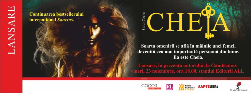 Dacă autorii români contemporani sunt ceva mai accesibili şi-i mai poţi vedea/discuta cu ei la diverse evenimente pe parcursul anului, pe cei străini e păcat să ratezi ocazia (poate unică în România) să-i vezi în carne şi oase mai ales dacă îţi este la îndemână şi te pasionează romanele lor. Fanii lui Simon Toyne şi-au dat probabil seama că despre el vorbesc, autorul trilogiei Sancti care îşi lansează pe 23 noiembrie la ora 18.00, Cheia, al doilea roman (după Sanctus) din aceastră trilogie.