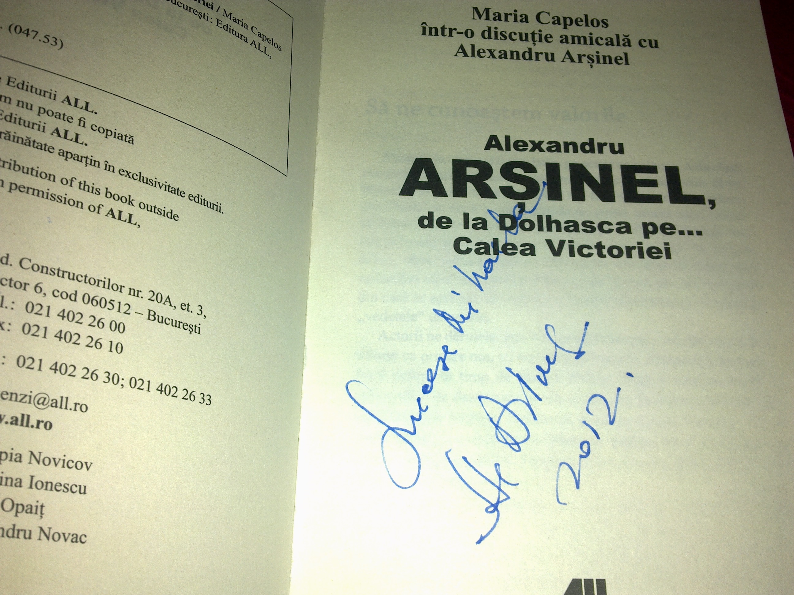 Am reuşit să ascult şi eu câteva ceva, să fac o poză printre atâţia ziarişti, am biografia lui Arşinel, am luat un autograf, am băut o cafea bună. Mulţumesc, Loredana Modoran şi Grupul Editorial All că am mai apucat să scot şi eu capul în lume din hârtiile mele de fiecare zi şi să-i văd pe oamenii aceştia deosebiţi (printre care vă număraţi şi voi, evident).
