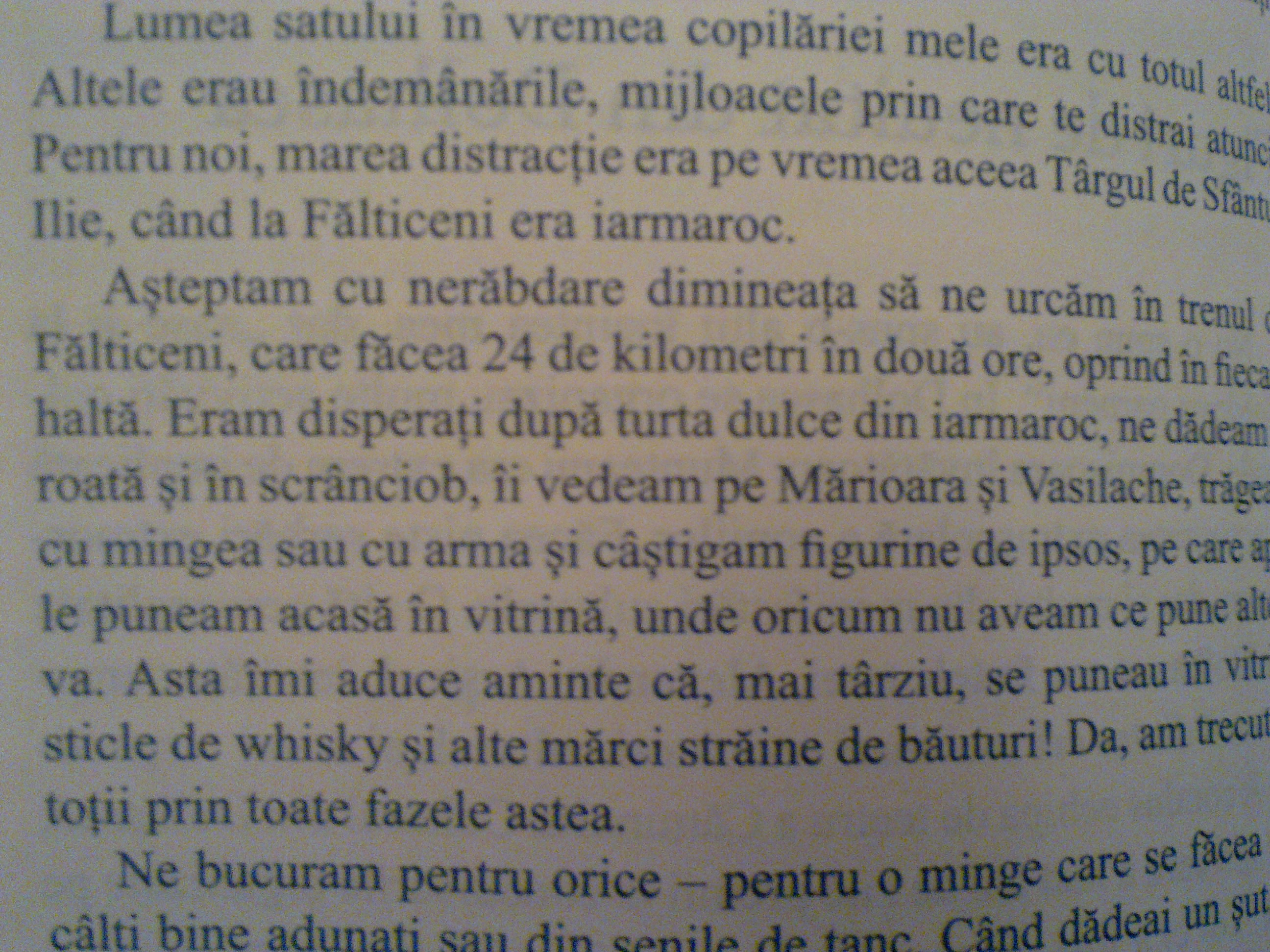 Prima oară când am folosit cuvântul scrânciob în Bucureşti, soţul meu a făcut nişte ochi mari ca şi cum aş fi vorbit într-o limbă străină cu o reacţie gen “s-o dăm pe Eliza în ce???” Moment în care mi-am dat seama, ca şi la penson, că e cazul să-mi mai adaptez limbajul la zona în care locuiesc. Nu de alta dar s-ar putea să nu mă fac înţeleasă. Cine ştie ce-o mai crede lumea când spun că dau copilul în scrânciob. Sună cam ameninţător cu acel “ciob” în coadă. Pentru cine nu ştie, scrânciob înseamnă leagăn. Deci nu-i fac niciun rău copilului dacă-l dau în scrânciob, s-ar putea chiar să-i placă. Mi-am amintit de cuvântul acesta (pe care încă-l folosesc, nu l-am scos din vocabular sub nicio formă doar că am grijă în prezenţa cui) când citeam aseară biografia domnului Arşinel şi m-am simţit foarte transpusă pe meleagurile natale. Aveţi mai jos dovada. Sper să nu vă plictisesc prea tare însă o să cam vorbesc despre cartea aceasta ceva vreme, sunt sub influenţa ei. Îndrăznesc să spun că, dacă s-ar apuca de povestit intens şi mai în detaliu, ar putea deveni un Creangă contemporan.