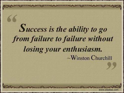 E drept că e un text motivaţional destul de bun acela care te asigură de faptul că succesul este capacitatea de a trece din eşec în eşec fără să-ţi pierzi entuziasmul însă în practică, atunci când eşuăm, nu  ne arde de prea mult entuziasm. Exersez de câteva zile capacitatea de a avea răbdare, de  a persevera şi de a-mi păstra entuziasmul chiar dacă nu mi-au reuşit lucrurile aşa cum mi-am dorit. Până la urmă există un sâmbure mare de adevăr în faptul că, în anumite situaţii, eşecul face bine: te ajută să înveţi şi mai mult şi să fii şi mai bine pregătit. Dar asta nu înseamnă că nu îţi vine să arunci cu ceva în el de eşec. Asta nu înseamnă că sari în sus de bucurie: vai! dar ce bine că am picat examenul, acum am marea şansă să învăţ şi mai bine! Nu ştiu ce m-aş fi făcut dacă aş fi luat examenul, n-aş mai fi învăţat nimic. Ba poate dacă aş fi luat examenul aş fi putut apoi să mă perfecţionez, nu să o iau de unde am rămas.