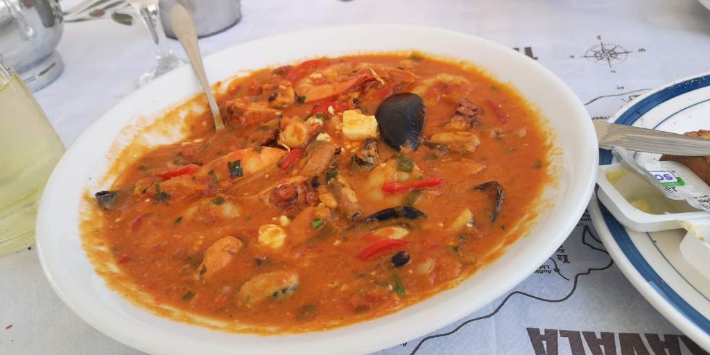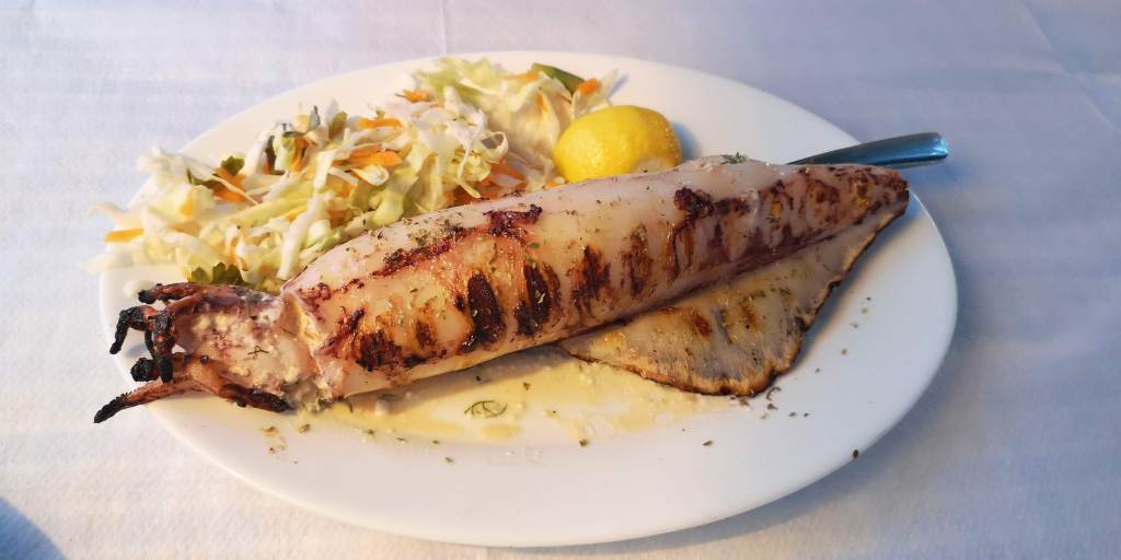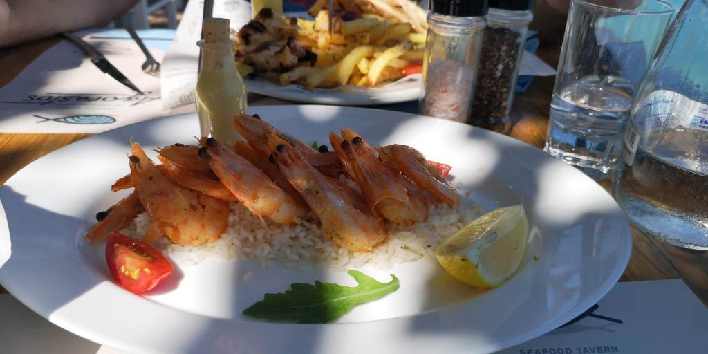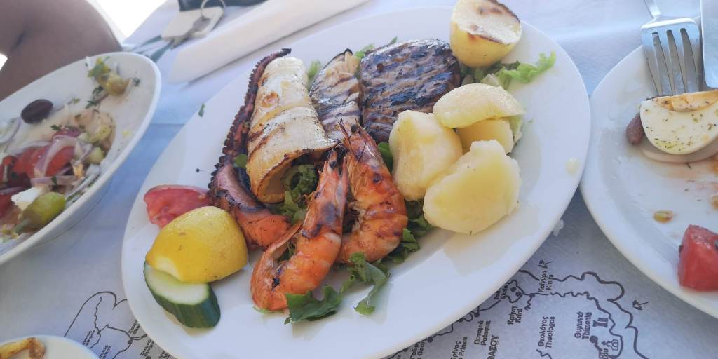 O mâncare mai complexă cu fructe de mare era în jur de 14 – 15 euro. Mănâncă lejer pe săturate două persoane. Supele undeva între 3 și 5 euro. Salatele, în funcție de complexitate, începând de la 3 până pe la 10 euro (depinde ce conținea). Homarul se lua la kilogram și costa 75 euro/kg (nu am luat, evident, dar într-o zi o să vreau să încerc și asta, nu chiar în criză economică). Aperitivele variau și ele între 3 și 6 euro (icre, sărmăluțe în viță, salată de vinete, salată de brânză, măsline, feta prăjită, feta la cuptor, alte combinații cu vinete, dovlecei, chifteluțe de dovlecei, chifteluțe de alt fel și tot așa).