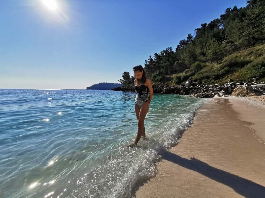 Plaje – Sunt plaje cu nisip iar marea este de un albastru-verde foarte frumos. Este în general curat și oamenii cam respectă. Nu știu cum este în plin sezon non-pandemic, acest articol este valabil pentru jumătatea lui iulie, 2020. Am stat destul de mult la bucățica de plajă din fața cazării însă acolo nu aveam umbrelă așa că stăteam doar în orele în care se putea sta fără umbrelă. Ne-a fost bine așa, pe cearșaf.