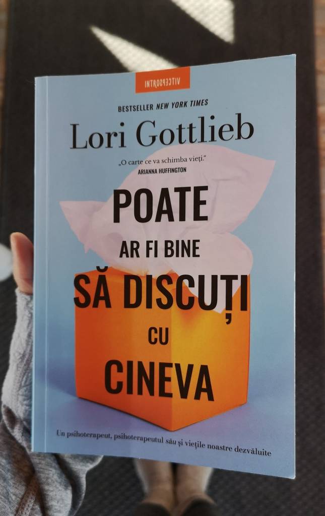 Ce citesc acum și vă recomand și vouă: Poate ar fi bine să discuți cu cineva, Lori Gottlieb, apărută la Editura Litera. Dacă nu ați fost niciodată la un terapeut și ați vrea sau dacă nu ați fost și nu ați vrea, sau dacă mergeți și nu înțelegeți mare lucru din proces, sau dacă mergeți și sunteți pe cale să renunțați, s-ar putea ca această carte să vă mai ajute să clarificați câteva lucruri. Eu sunt convinsă că fiecare are nevoie să discute cu cineva, indiferent cât de tare credem că vom putea rezolva singuri totul și de fiecare dată.
